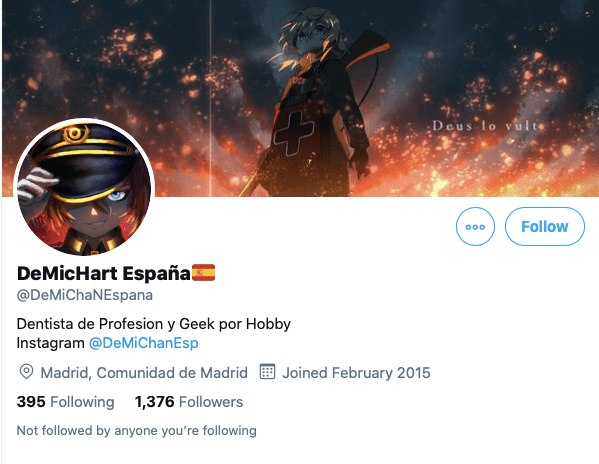 @demichanespana: Es odontólogo y geek. No hay atisbos de odontología en su cuenta salvo en la descripción de su bio, como yo, y es un friki de otras cuestiones, también como yo.