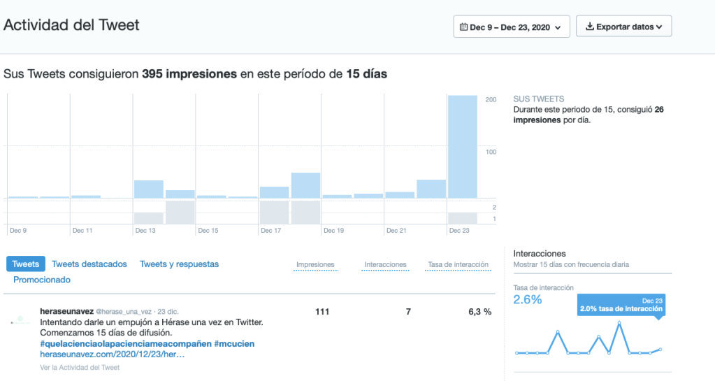 He creado contenido específico para esta tarea en la web y lo he adaptado en forma de hilo para la red social y también he compartido contenido directamente en Twitter, tanto mío como de terceros. He publicado e interactuado 14 de los 15 días; todo un récord para mí. - Hacer bailar mis números al alza: publicaciones, followers y followings. CONSEGUIDO.