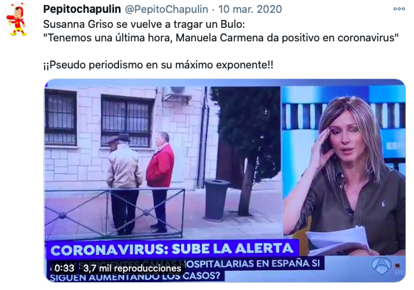 - Los errores e imprecisiones. Imágenes que no se corresponden con la noticia: el vídeo de un hospital de China haciéndolo pasar por español y la famosa playa de La Barceloneta supuestamente abarrotada y sin apenas gente.